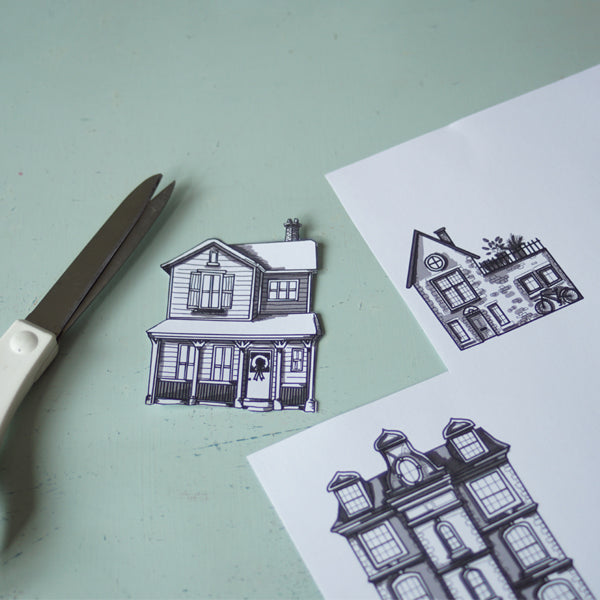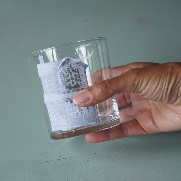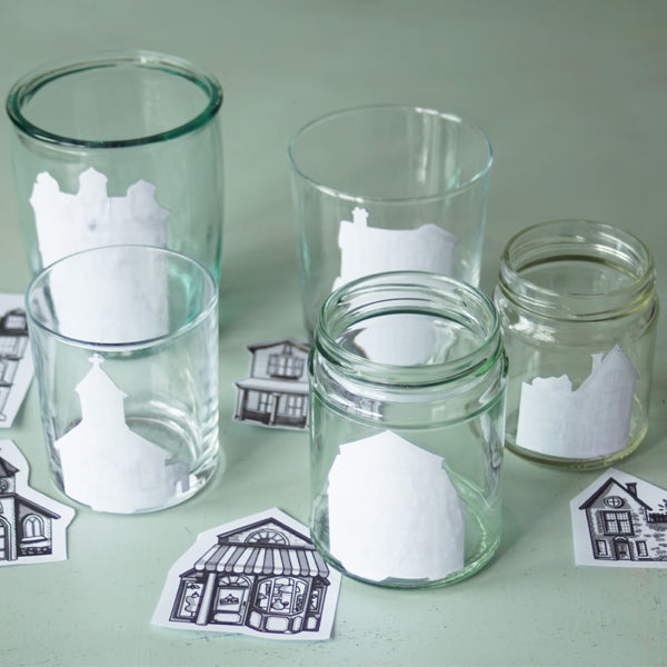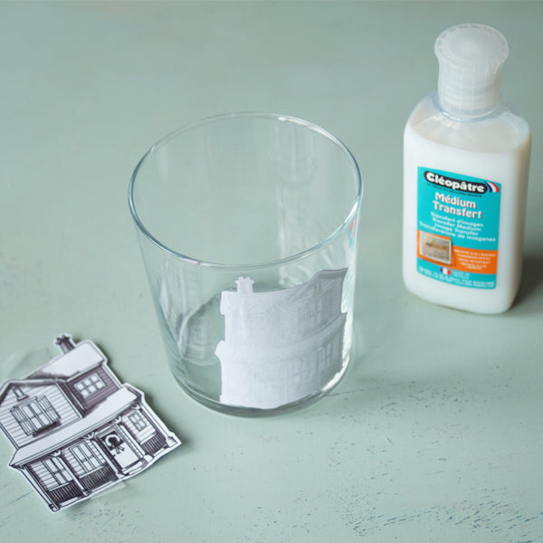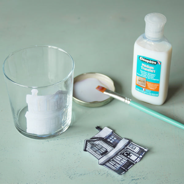 Ces ravissants photophores, illustrés au médium transfert Cléopâtre, perpétuent la tradition des bâtisses miniatures, très prisées pour parer un coin de la salle à manger ou du salon pendants les fêtes.